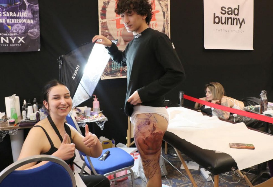 „Првпат сум на ваква конвенција и за првпат во Македонија воопшто. Имам свое студио во Сараево, работам 11 години. Во Босна и Херцеговина не е толку развиена тату културата како кај вас или во Србија, но полека растеме од ден на ден“, ни рече Сарајлиќ кој ја тетовираше неговата колешка Ина Чано (фото), со која заедно работат во студиото. Тетовираше и нивната помлада колешка Ана која има 21 година, и работи само една и пол година, но Сарајлиќ рече дека клиентите многу ја бараат зашто многу брзо учи.